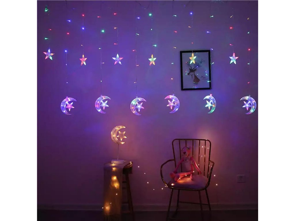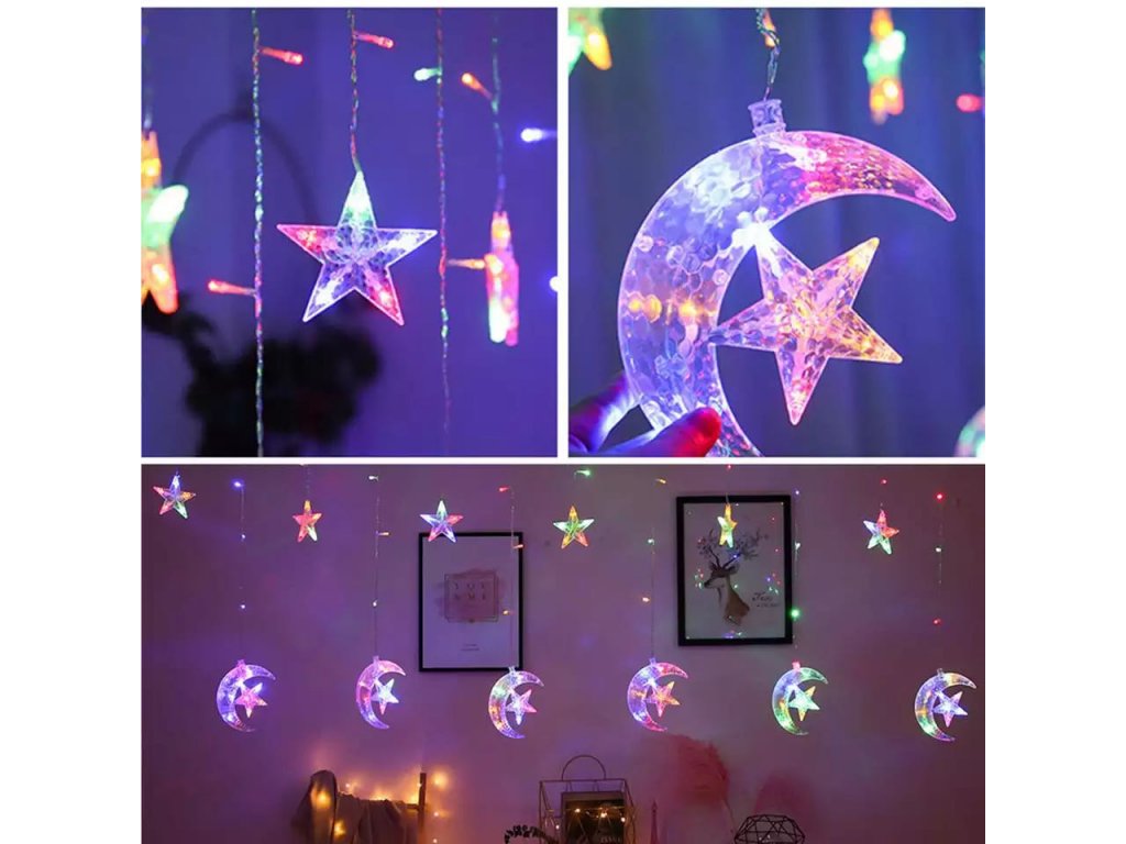 Světelný řetěz s 120 LED světýlky ve tvaru hvězdy a měsíce. Vhodný pro výzdobu vašeho pokoje, balkonu, lze také použít k výzdobě narozeninových oslav. Jen si dávejte pozor, při venkovním použití musíte zakryt ovládač před dešťem.