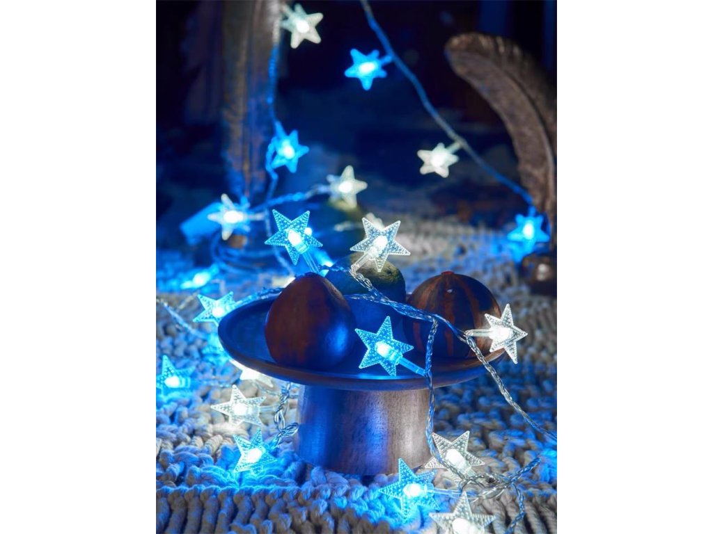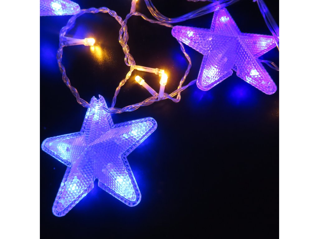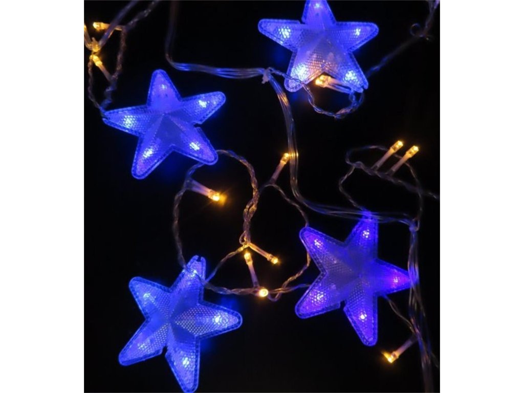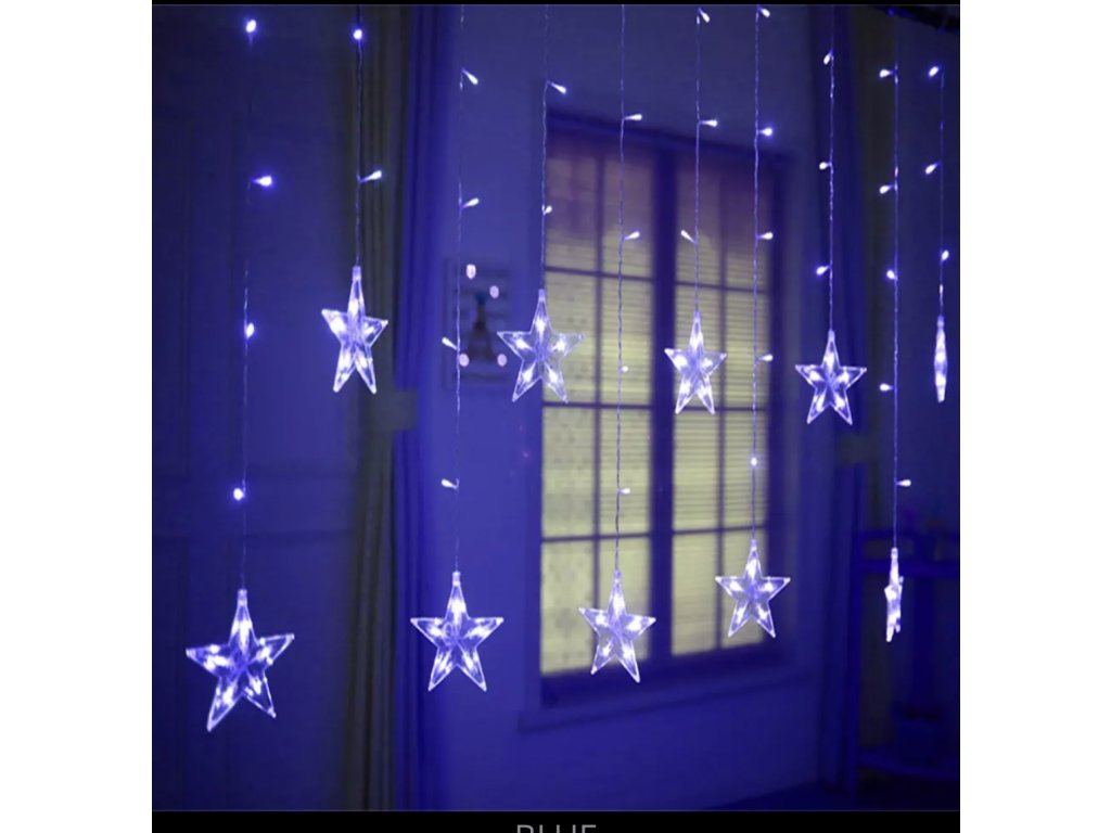 Světelný řetězec s 136 LED diodami a 16 zavěšenými modorými hvězdami je vhodný pro výzdobu vašeho pokoje nebo obchodu na svátcích a oslavách.