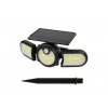Solární LED světlo s čidlem pohybu, možností natáčení reflektorů i solárního panelu můžete připevnit na stěnu nebo pomocí trnu zapíchnout do země.