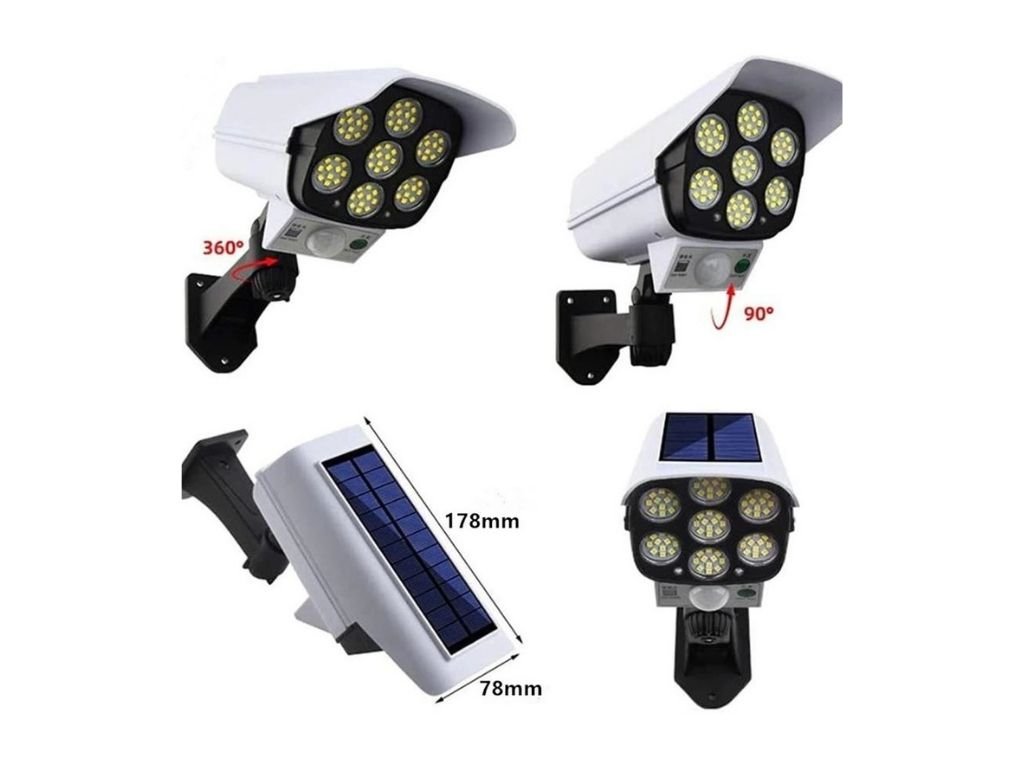 solární LED světlo ve tvaru kamery s čidlem pohybu a dálkovým ovládáním, 77 LED